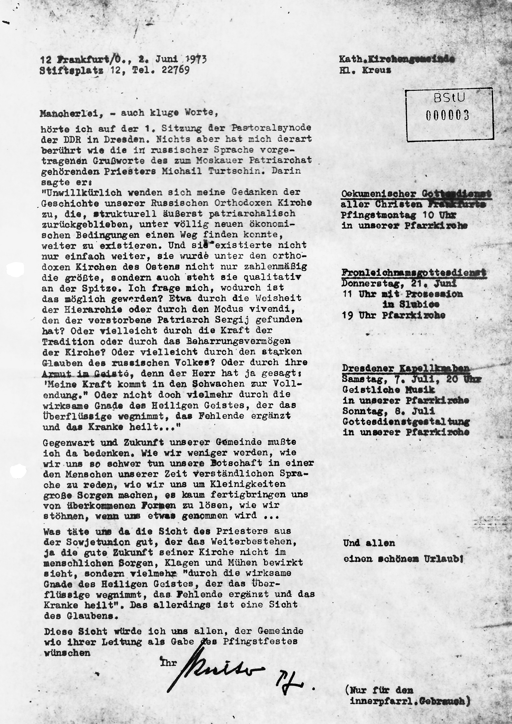 Faksimile von einer Innerkirchlichen Mitteilung zu Information