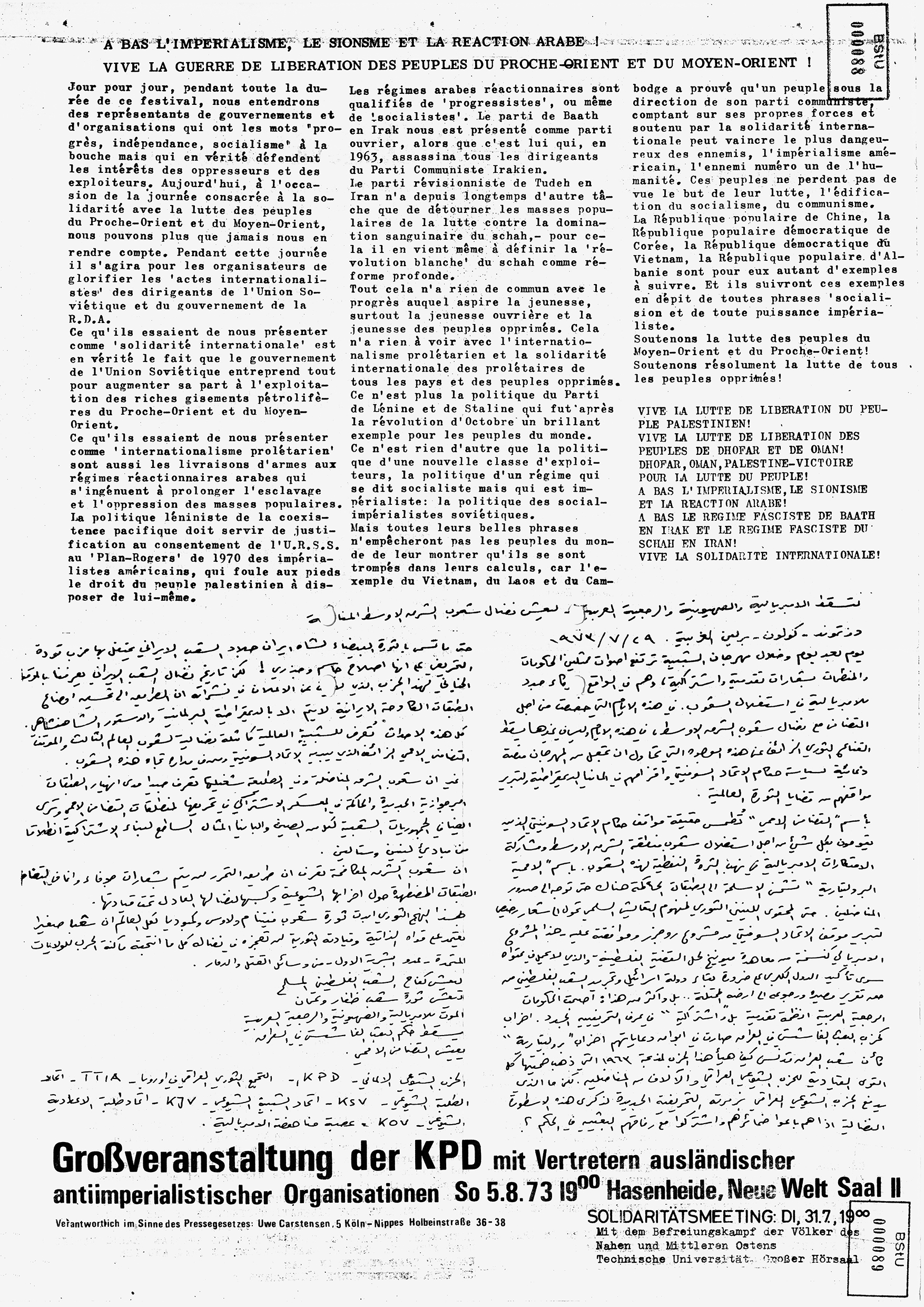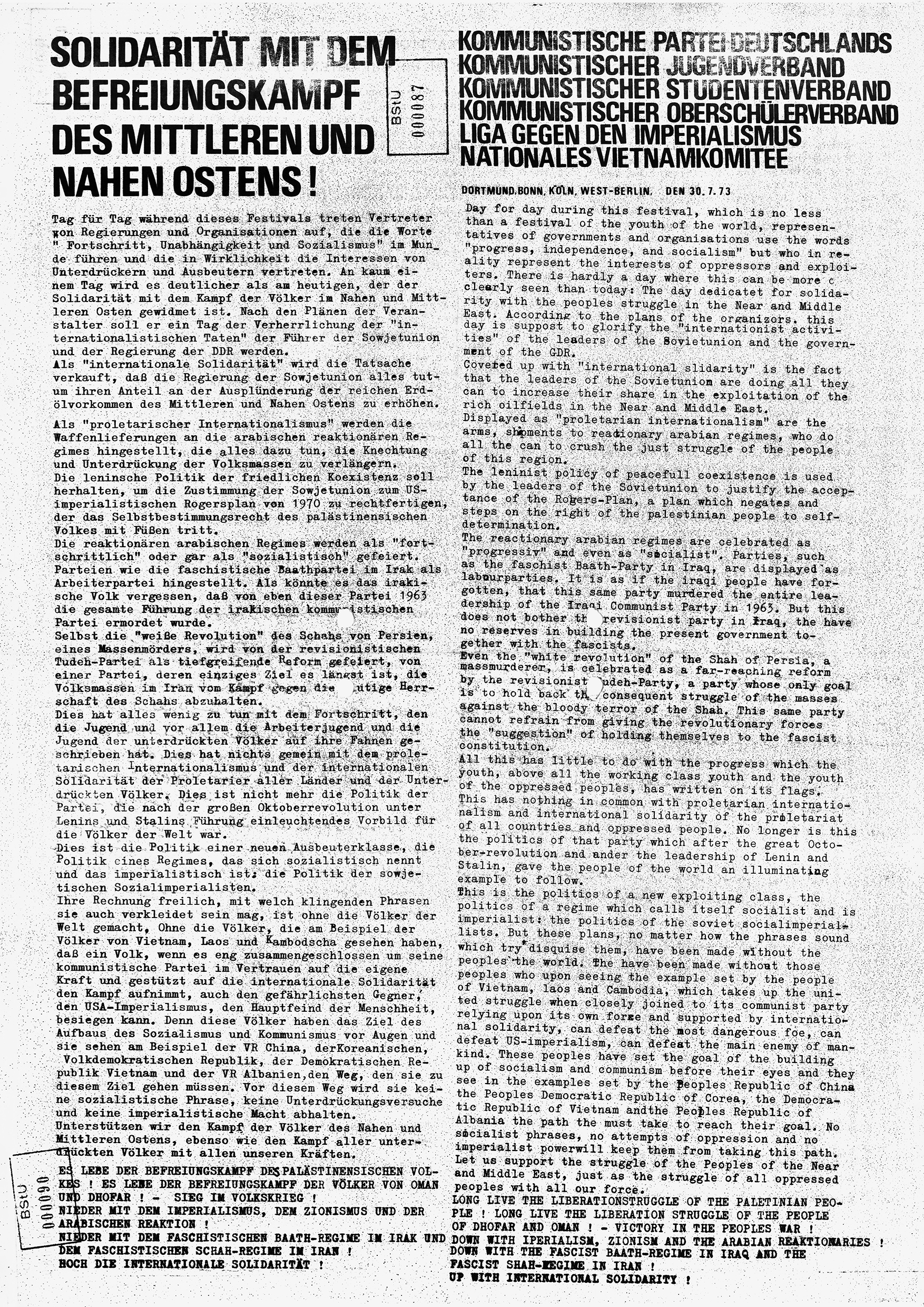 Faksimile von einem Solidaritätsaufruf der