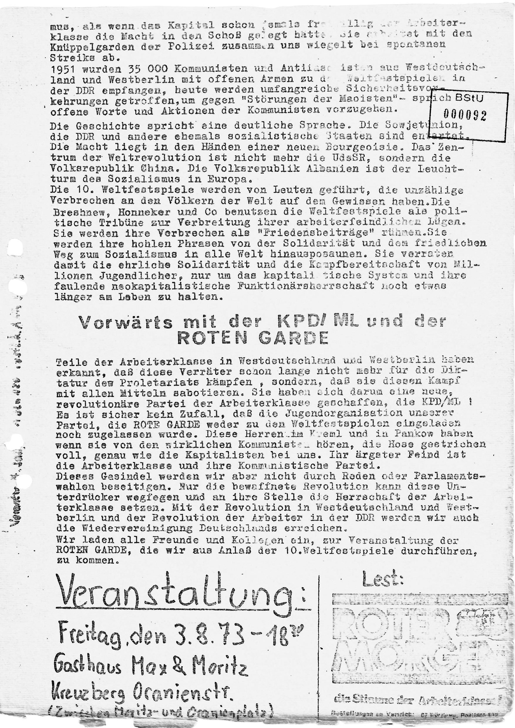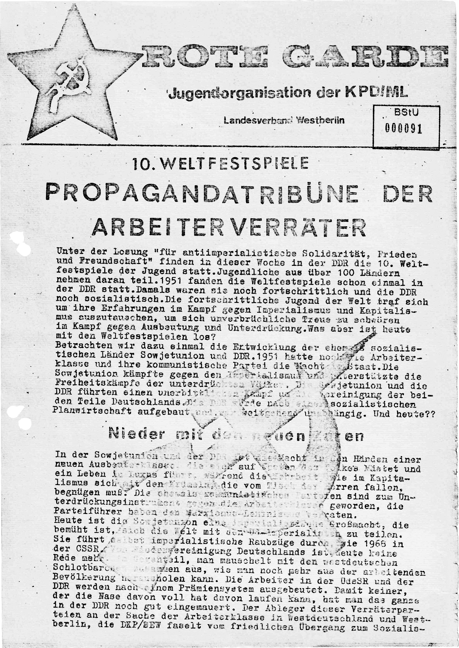 zu Information 737/73 Faksimile von Mitteilungsblatt »Rote Garde« zu den X. Weltfestspielen zu Information 737/73